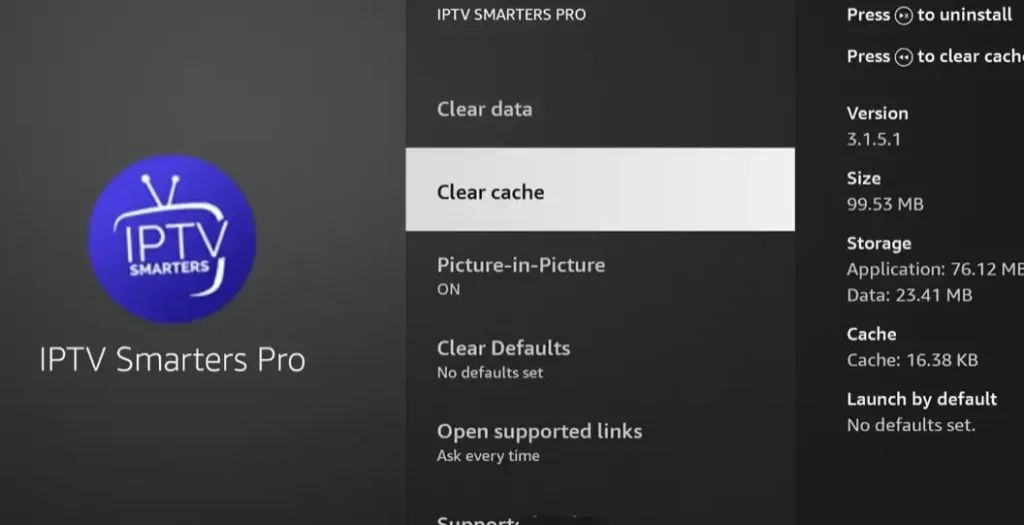 Clear your IPTV app cache : Go to Settings > Apps > your IPTV app > Storage > Clear Cache to remove corrupted temporary files.